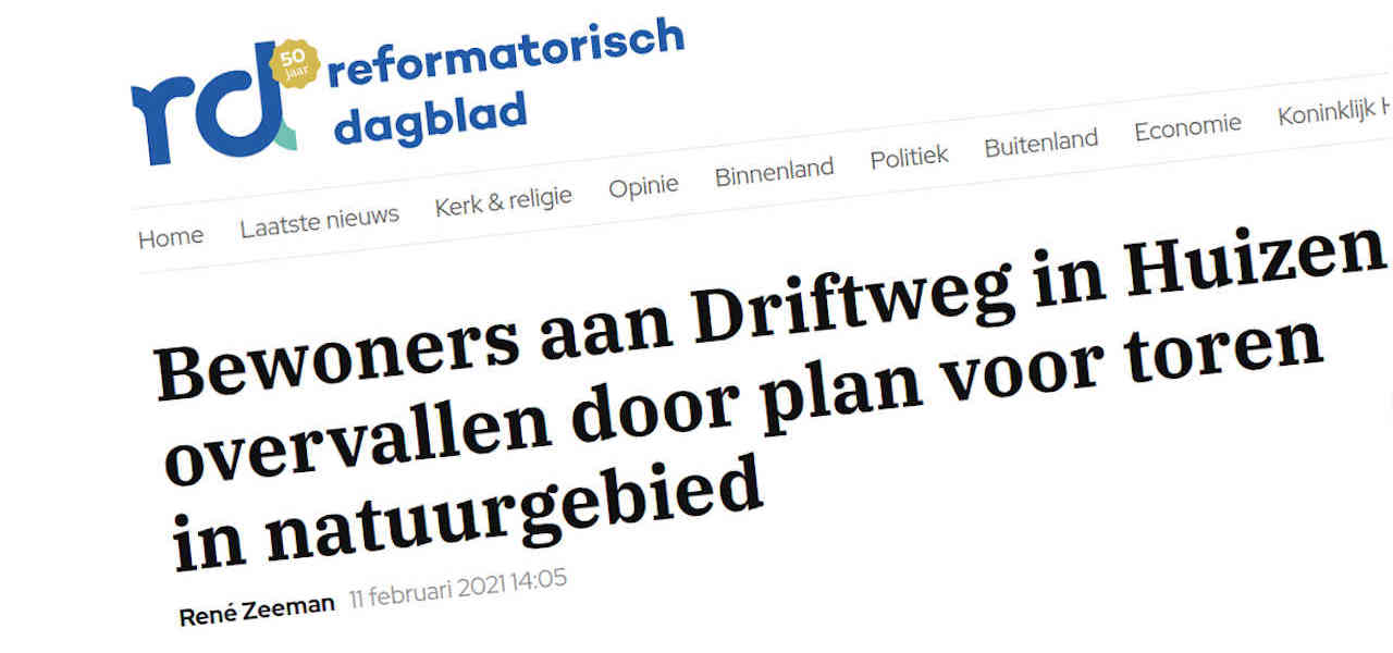 Ook de landelijke pers ziet bebouwing in een natuurgebied met argesogen aan. Een artikel in het RD.